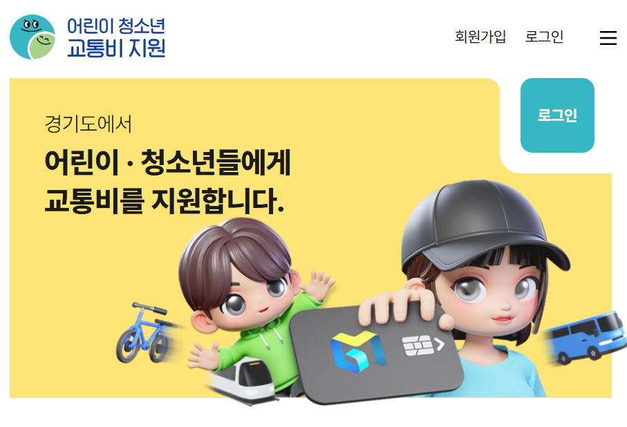 - 경기도 어린이 교통비 지원 포털 접속