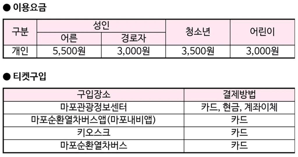 마포순환열차버스 요금 및 종일권 안내