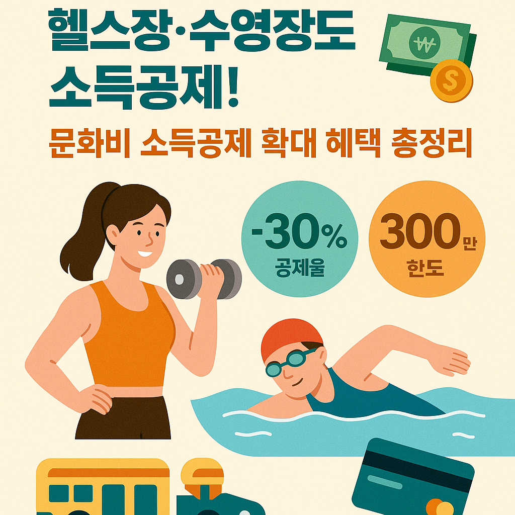 바로 ‘문화비 소득공제’ 적용 확대 덕분에 이제 헬스장, 수영장 이용료도 소득공제 대상이 되었답니다!