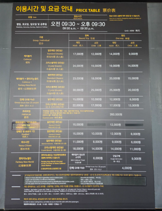 - 요금: 일반 & 크리스탈 캐빈, 왕복/편도별 요금 상세 안내