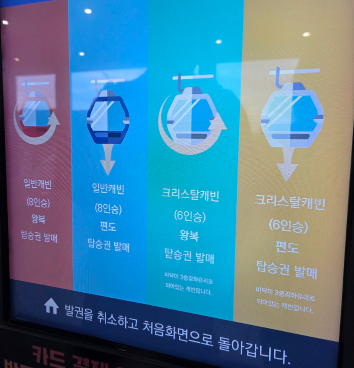 – 참고로 일반 캐빈은 실내 조명이 완비되어 있고, 크리스탈 캐빈은 바닥이 투명한 특수 구조입니다
