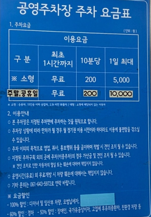 - 1시간 무료, 이후 10분당 200원, 1일 최대 요금 5,000원 부과됩니다
