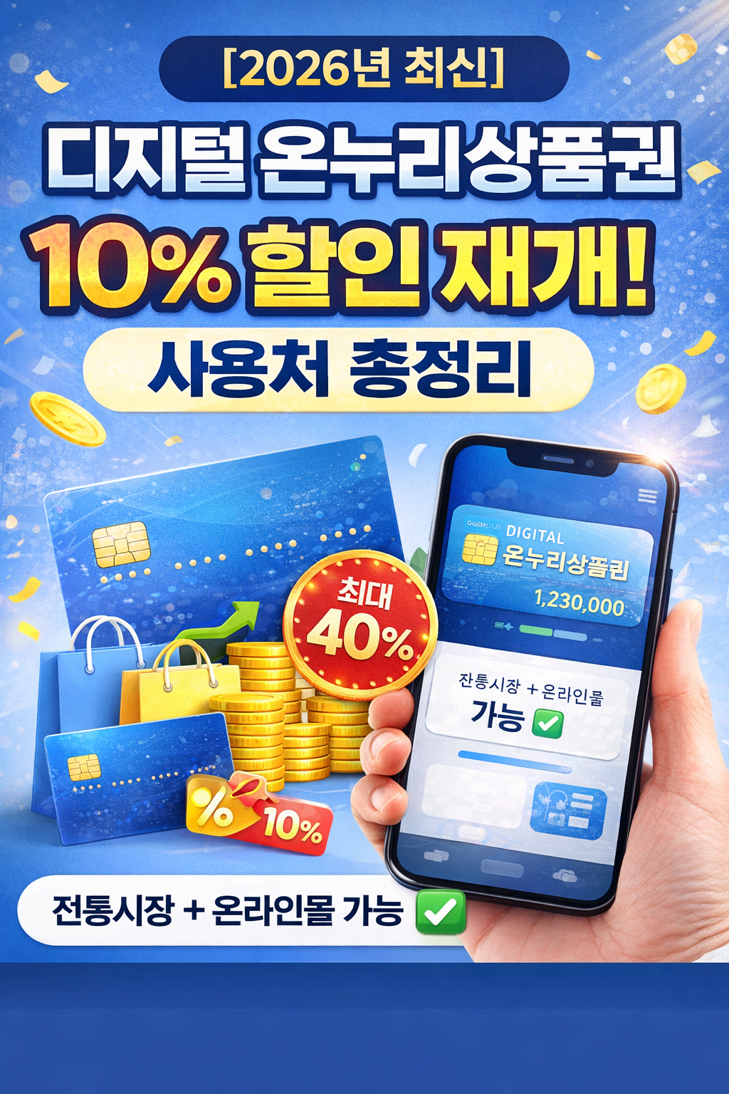 - ✔ 2026년 디지털 온누리상품권 10% 할인 재개