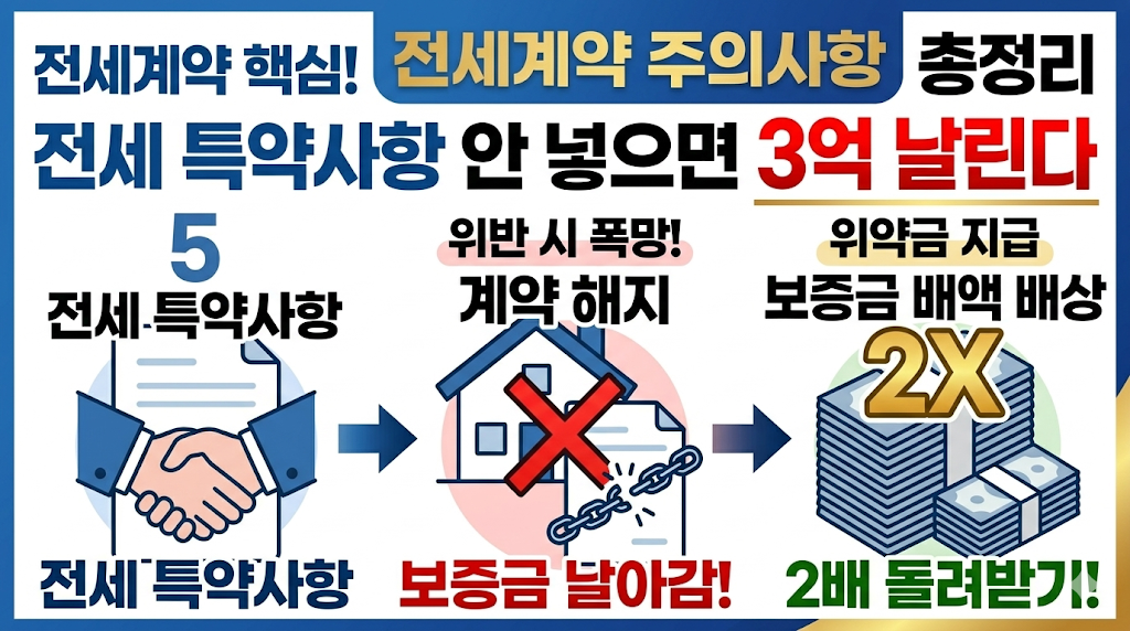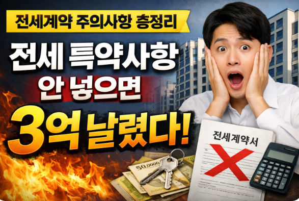 전세계약은 단순한 임대차 계약이 아니라 수억 원이 오가는 금융 거래입니다.그래서 전문가들은 전세계약 주의사항 중 가장 중요한 것이 전세 특약사항이라고 말합니다.특약 한 줄이 3억 원 보증금을 지킬 수도 있고, 반대로 3억을 날리는 상황을 막아주는 마지막 안전장치가 될 수 있습니다.