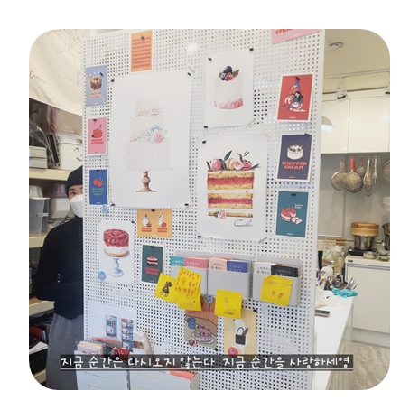 안쪽의 공간을 가리기에도 좋은 파티션을 이렇게 작고 이쁜 엽서들로 공간을 채워 주셨네요~
