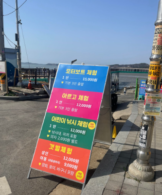 - 모터보트, 아르고, 어린이 낚시 체험, 갯벌 체험 등